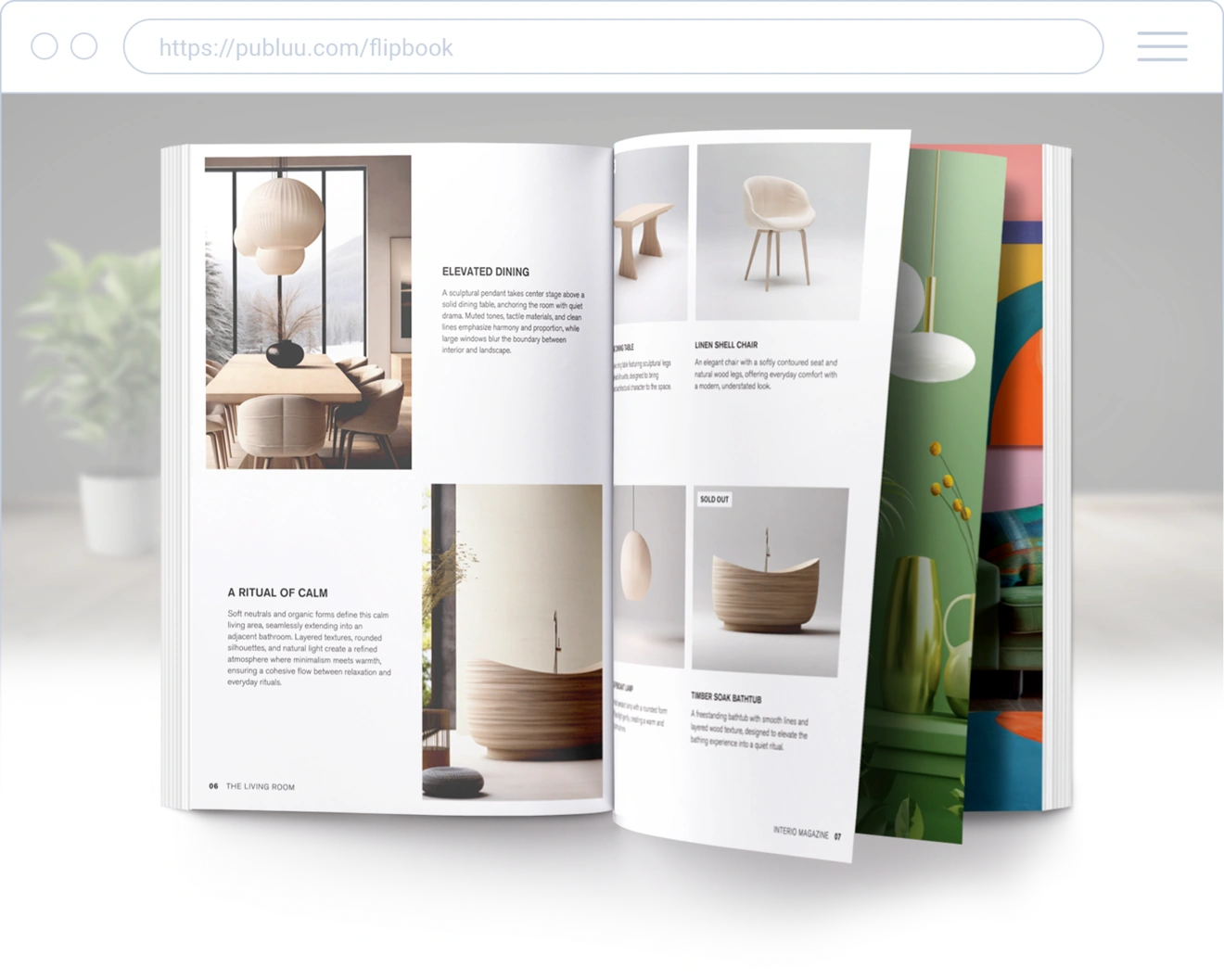 Keep your readers engaged and immersed in your content. Publuu allows you to add videos, clickable links, and hotspots, transforming your catalog, magazine, or e-book into an interactive experience.