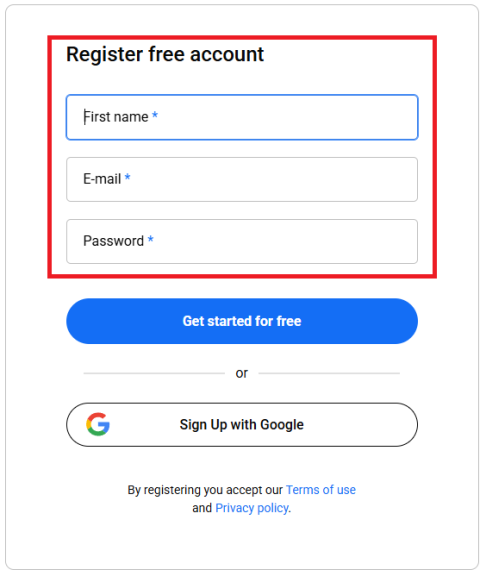 When you finish typing the required data, click GET STARTED FOR FREE button below.